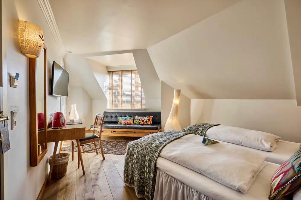 Axel Guldsmeden is a cozy boutique spa hotel in Vesterbro, known for its warm Nordic Balinese style, organic atmosphere, and central location near Copenhagen Central Station and Tivoli. It is a great choice for a charming city stay with wellness facilities and easy access to the main sights. Located 200 meters from Copenhagen Central Station (Metro M4), which runs directly to Sluseholmen Metro Station, the closest stop to Trifolium.